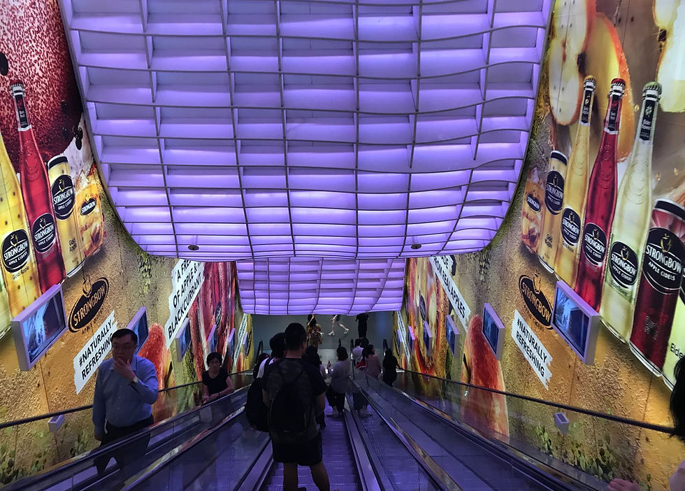 Strongbow Apple Cider aims to expand its portfolio of flavored cider beverages with the new launch of the Golden Apple. Amplifying the idea of ingredients picks from nature all around, the visual incorporates a fusion of nature and urban cues. Bringing a whimpsical yet refreshing take of Apple Cider. This is an extension being displays at ION Orchard "Dragontail" escalator that stretches from the MRT level to the basement.